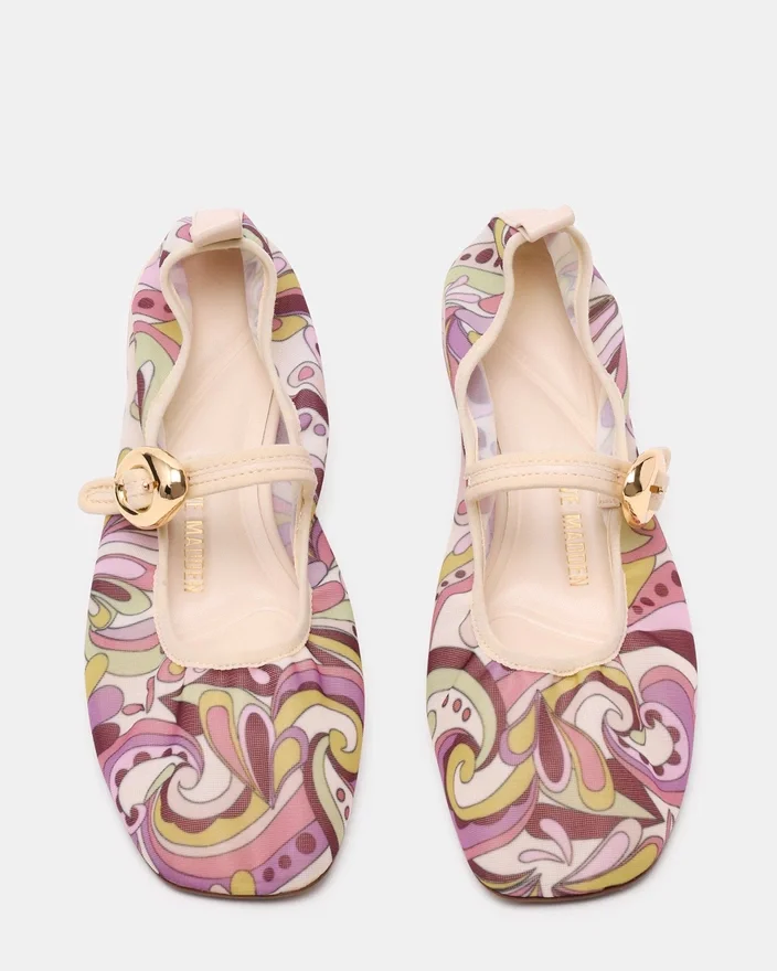 Tidlös elegans möter vardaglig komfort med Daffia Purple Multi. Denna Mary Jane-ballerina har ett distinkt spänne med gulddetaljer som ger en touch av sofistikation. Den säkra remmen över vristen ger pålitligt stöd, medan den platta sulan garanterar att skon kan bäras hela dagen. Ett måste i garderoben som balanserar elegant estetik med praktisk funktion.