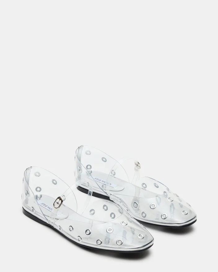 Luneth Clear Mary Jane-ballerinaskorna visar upp raffinerat hantverk med sina karakteristiska ögondetaljer. Denna klassiska silhuett har en säker Mary Jane-rem som ger justerbart stöd och en elegant passform. Ballerinaskornas konstruktion erbjuder komfort hela dagen samtidigt som den bibehåller en elegant, diskret estetik. Denna modell är idealisk för dig som uppskattar tidlös skodesign och passar lika bra till vardagsstil som till fest tack vare sin mångsidiga stil och sofistikerade konstruktion.