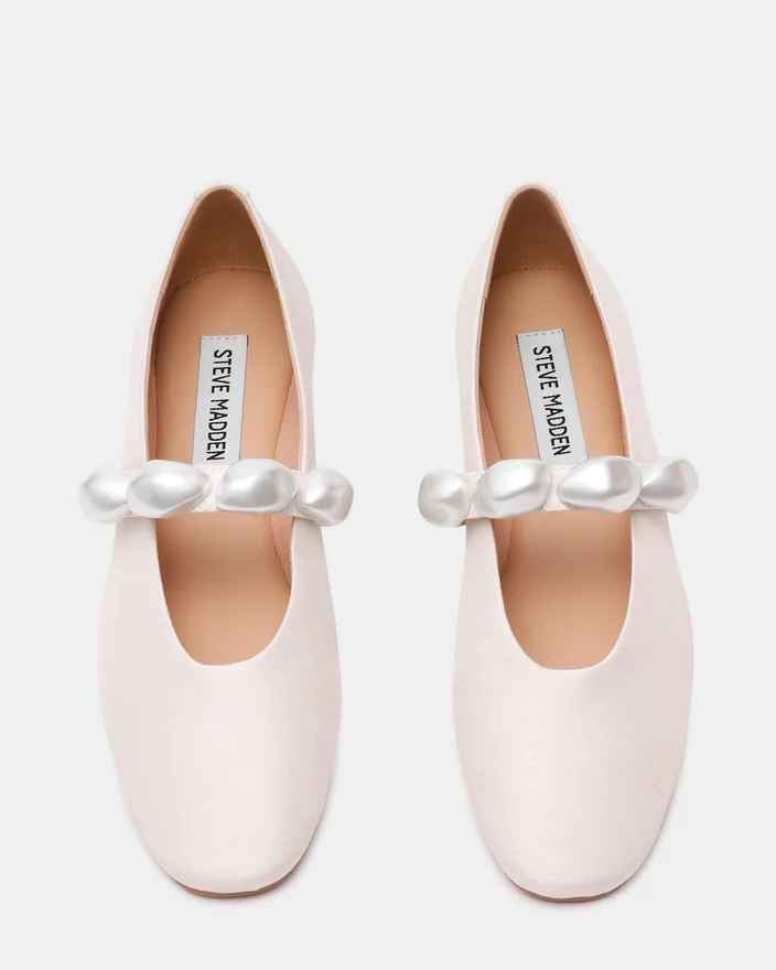 Den vita Mary Jane-ballerinaskon Poppin Pearl White kombinerar klassisk stil med modernt hantverk. Tillverkad av premiummaterial erbjuder denna platta sko en elegant look som är idealisk för både professionella och vardagsstilsammanhang. Mary Jane-remmen säkerställer en säker passform samtidigt som elegansen bibehålls. Dessa platta skor är lätta och bekväma och kan bäras hela dagen utan att kompromissa med sofistikationen. Perfekt för dig som söker tidlös design i kombination med pålitlig komfort.