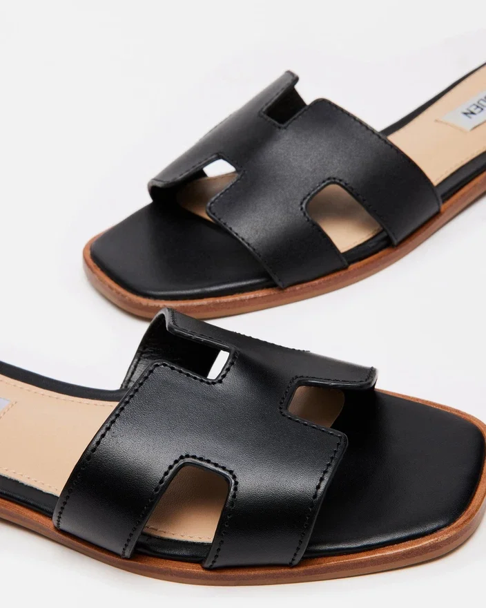 Geometriska utskärningar på den breda remmen på Hadyn Slide ger denna platta sandal en fräsch känsla.