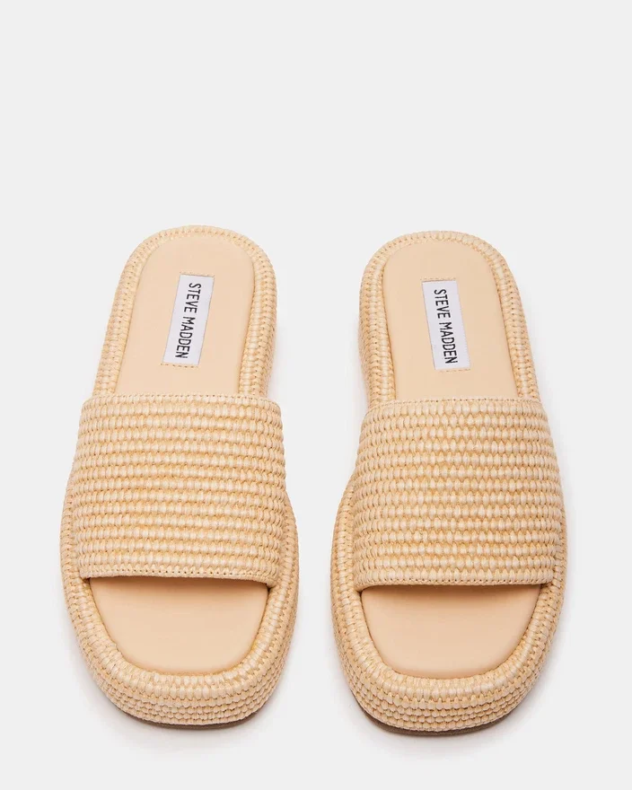 • Beachy-sandalen med fyrkantig tå har en flattform-sula insvept i vävd raffia och en matchande bred rem för en superbekväm, strukturerad look.
