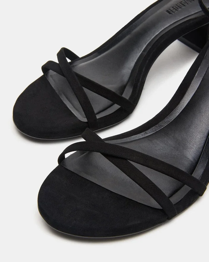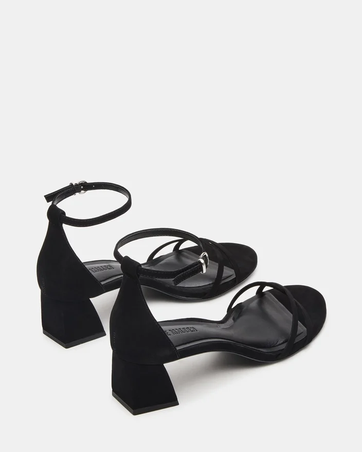 Rae Black Nubuck är en sandal med remmar och blockklack som kombinerar modern stil med pålitlig komfort. Den är tillverkad av högkvalitativa material och har smala remmar som ger ett säkert stöd samtidigt som de framhäver fotens naturliga form. Den robusta blockklacken garanterar stabilitet och bekvämlighet, vilket gör den idealisk för både dag- och kvällstillfällen där du vill se elegant ut utan att kompromissa med komforten.