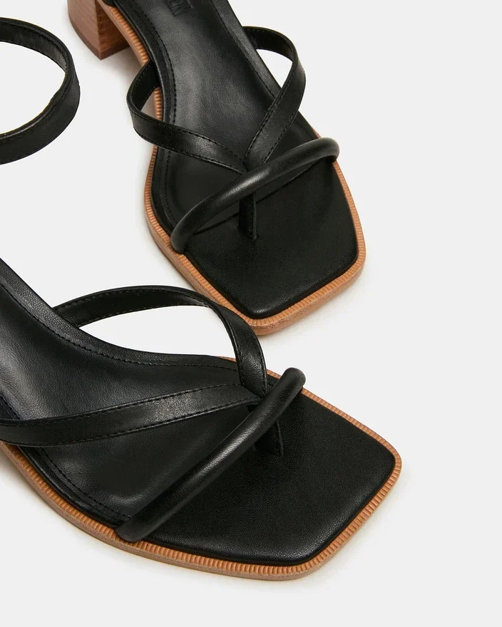 Förbättra din skokollektion med Tilly svart läder, en sandal med fyrkantig tå, remmar och blockklack, designad för både stil och stabilitet. Med en säker ankelrem garanterar denna sandal en säker passform, medan den robusta blockklacken erbjuder bekvämt stöd för långvarigt bruk. Tillverkad av högkvalitativa material passar den enkelt till både dag- och kvällsoutfits och kombinerar raffinerad estetik med praktisk komfort.