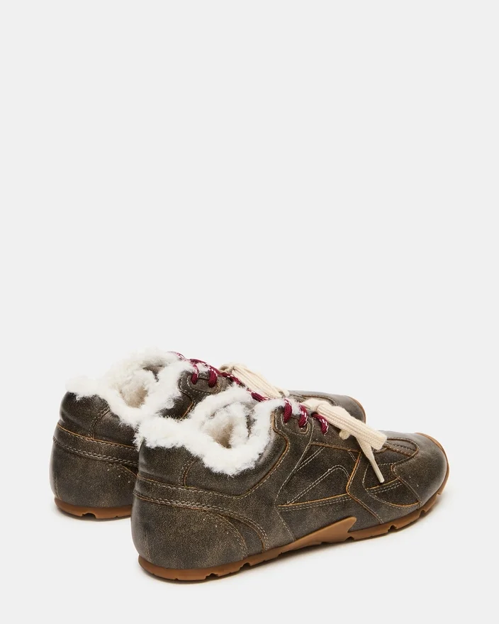 Aziel Faux Fur Brown Distressed är en låg sneaker med snörning som kombinerar stil och komfort. Dessa sneakers är perfekta för vardagsbruk och är tillverkade av material av högsta kvalitet. Med en elegant design och säker passform erbjuder de den perfekta blandningen av mode och praktiskhet. Uppgradera din skokollektion idag med dessa mångsidiga och tidlösa sneakers.