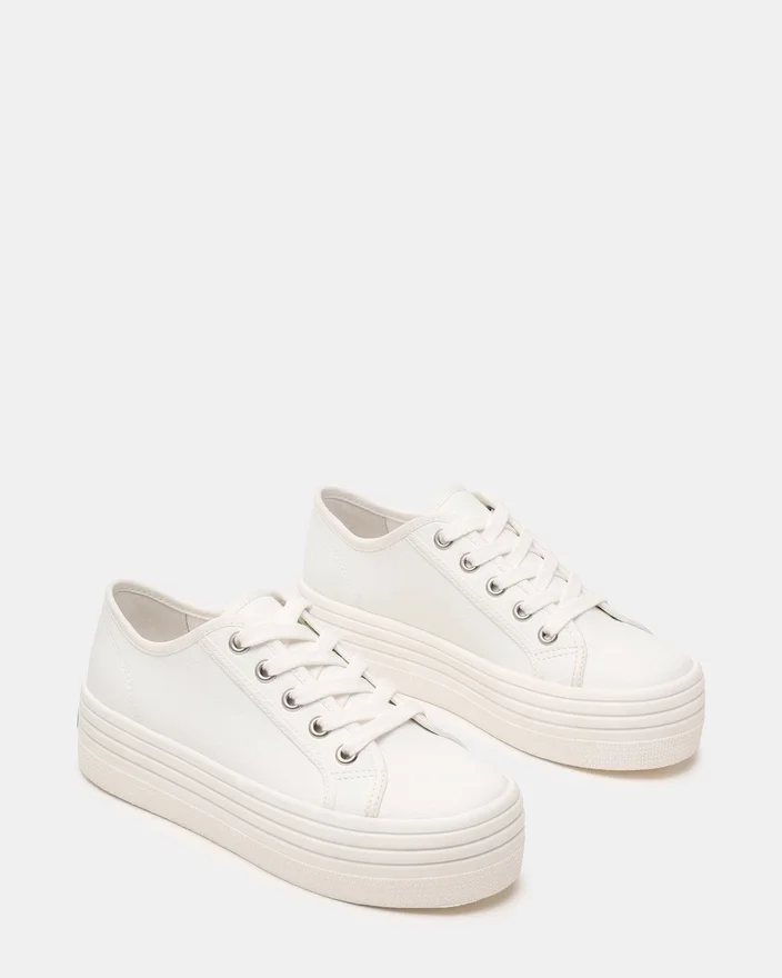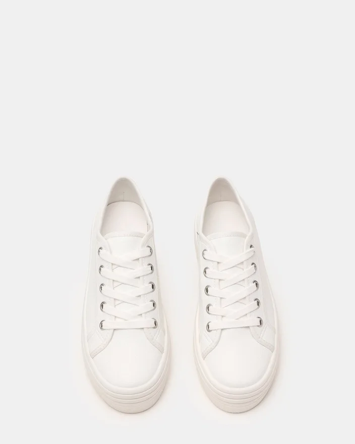 Bobbi White-plattformsneakersen utstrålar diskret elegans med sin snörning och låga silhuett. Denna design är skapad för mångsidighet och passar lika bra till vardagsstil under helger som till elegant vardagsmode. Den upphöjda plattformssulan ger diskret höjd samtidigt som den ger en stabil grund. Högklassigt hantverk garanterar hållbarhet även vid upprepad användning, vilket gör den till en pålitlig bas i alla garderober. Perfekt för dig som uppskattar rena linjer och funktionell design.