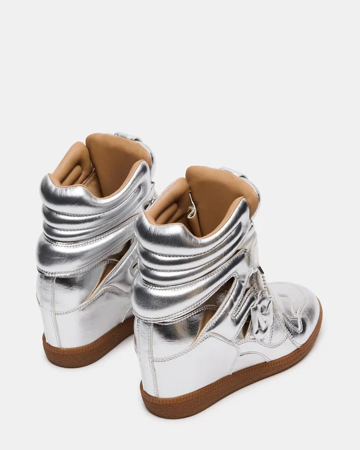 Mavis Silver High-Top Sneaker kombinerar klassisk stil med modern bekvämlighet. Tillverkad av premiummaterial, erbjuder den hållbarhet och en raffinerad look. Kardborrbandet säkerställer en säker passform och gör skon enkel att ta på och av, vilket gör den idealisk för dig som söker både komfort och funktionalitet. Perfekt för att lyfta outfits i vardagsstil med en elegant, professionell touch.