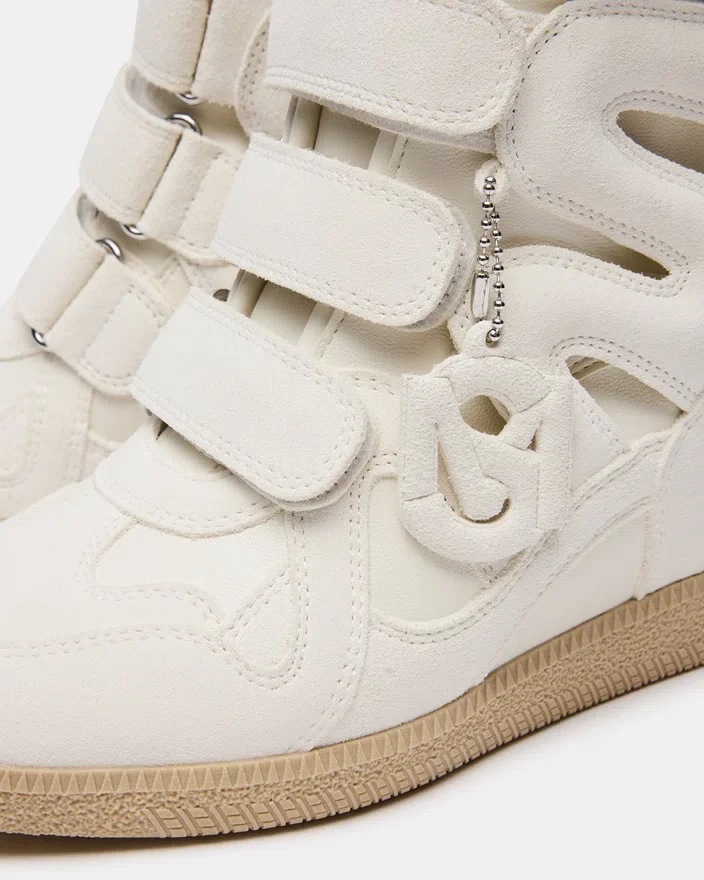Mavis vit mocka högskor kombinerar klassisk stil med modern bekvämlighet. Tillverkad av premiummaterial, erbjuder den hållbarhet och ett raffinerat utseende. Kardborreförslutningen säkerställer en säker passform och gör den enkel att ta på och av, vilket gör den idealisk för dig som söker både komfort och funktionalitet. Perfekt för att lyfta outfits i vardagsstil med en elegant, professionell touch.