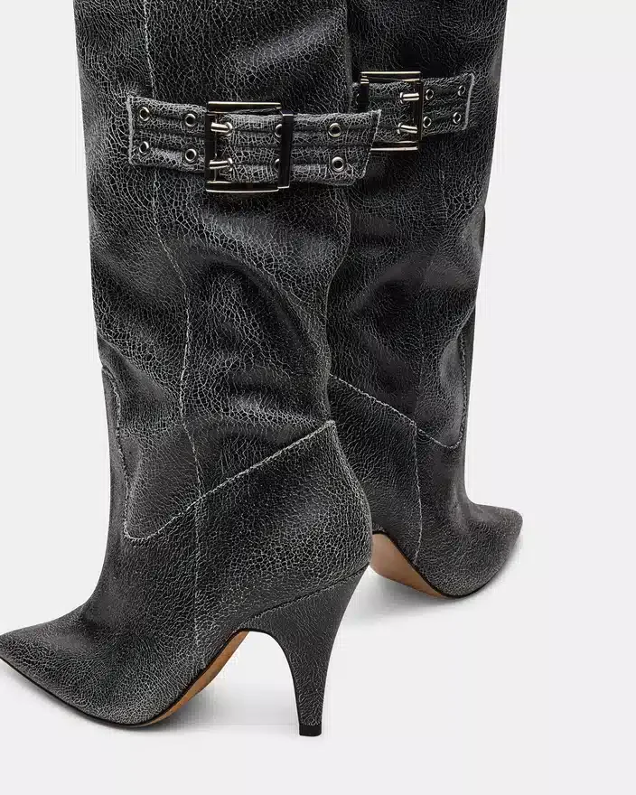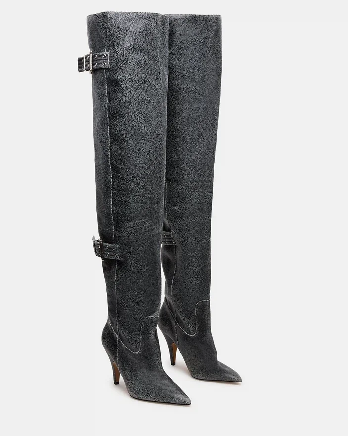 Baddie-stövlarna är skickligt tillverkade och både trendiga och praktiska. Dessa överknästövlar med klack har spetsig tå och spänndetaljer och ger en unik touch till vilken outfit som helst. Lyft din stil med dessa iögonfallande stövlar. 46 cm skaftomkrets, 58 cm skafthöjd