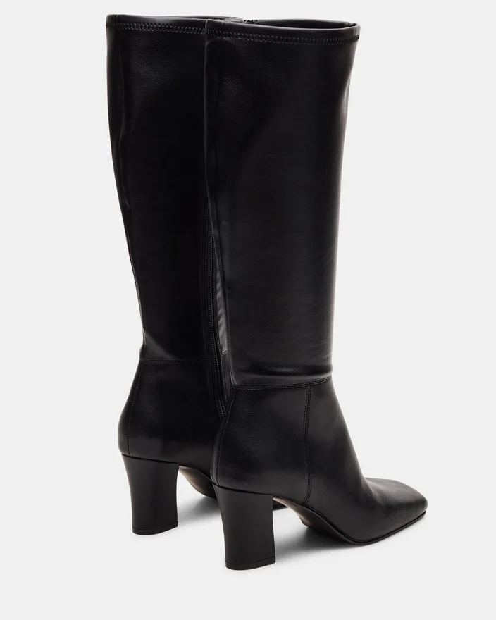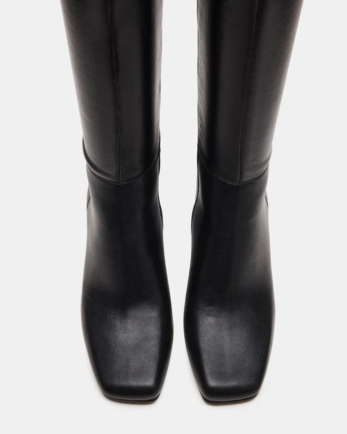 Förbättra din skokollektion med Elliot Black, en elegant knähög stövel med fyrkantig tå som är designad för både stil och stabilitet. Med en stadig blockklack erbjuder denna stövel säkert stöd och en modern silhuett. Den höga skaftet ger mångsidig täckning som enkelt kan matchas med olika outfits, vilket gör den till ett sofistikerat val för alla tillfällen.