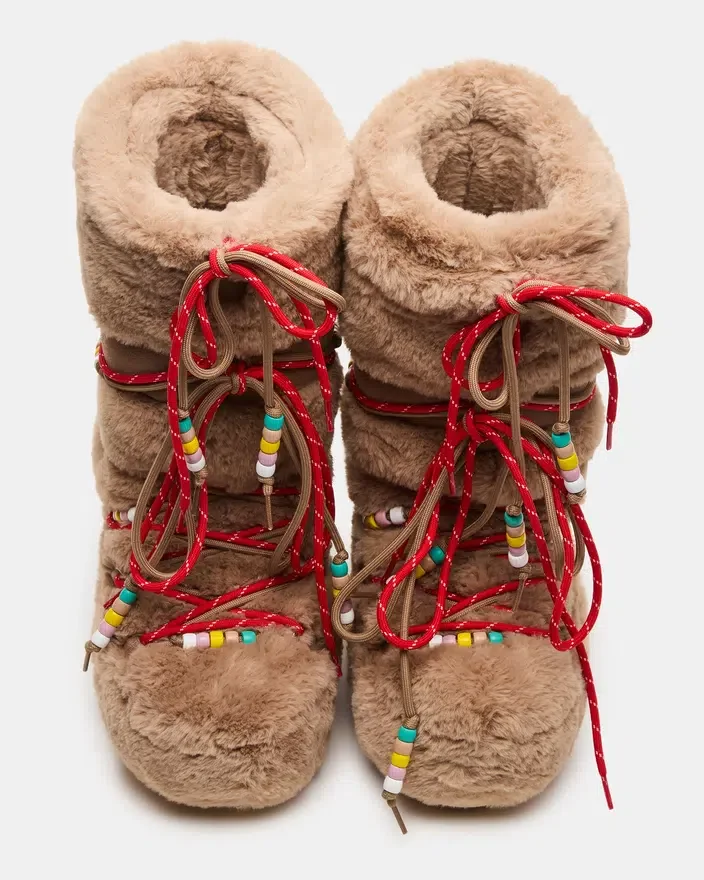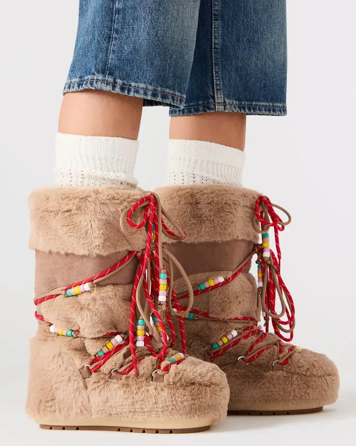 Upplev den perfekta blandningen av stil och komfort med Mousse Faux Fur Chunky Stövlar. Med en säker snörningsdesign erbjuder denna stövla en bekväm passform, medan det mjuka fuskpälsfodret garanterar värme och mjukhet. Den tjocka sulan ger pålitligt grepp och hållbarhet, vilket gör den idealisk för både stads- och vardagsstil.