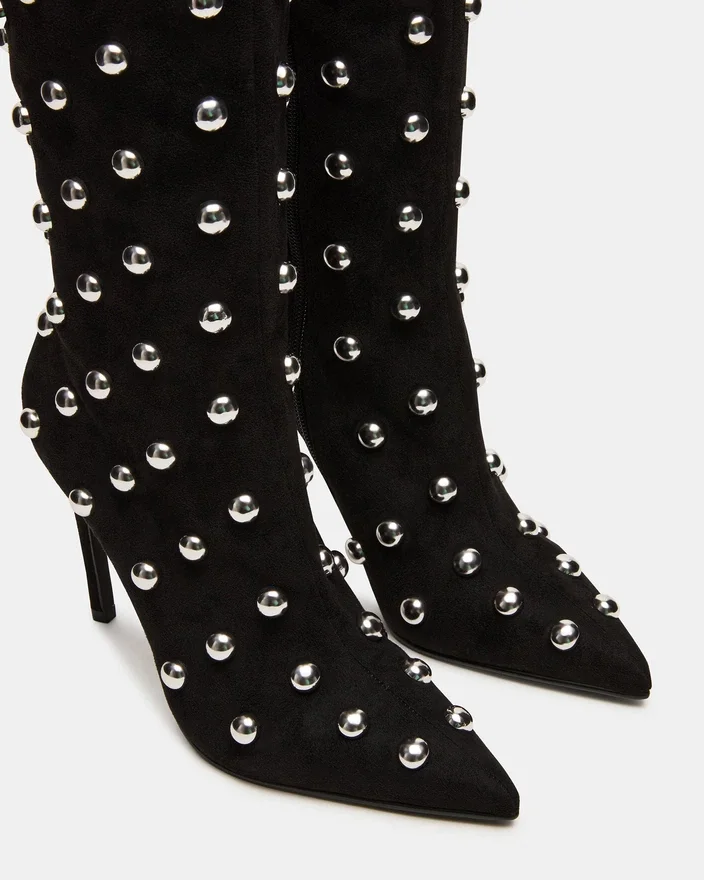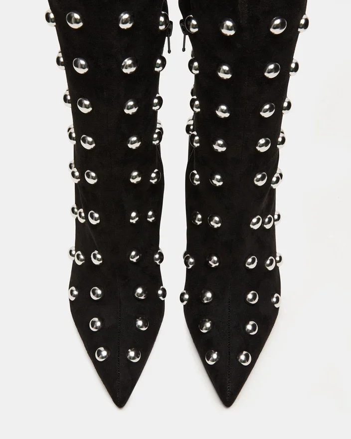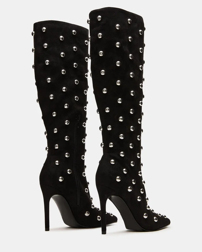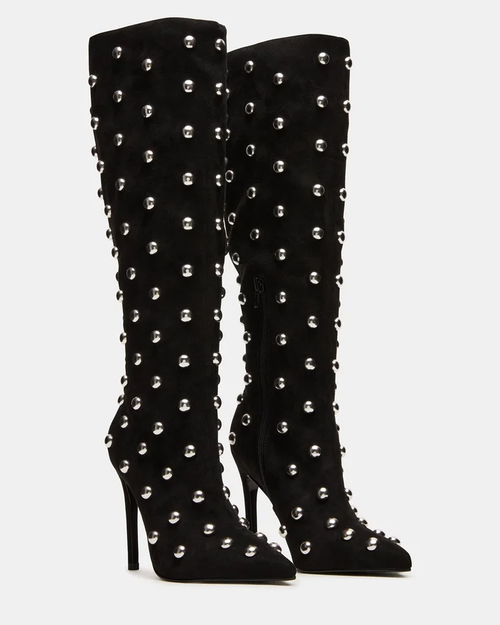Nitro Black Studs är ett sofistikerat och mångsidigt tillskott till vilken garderob som helst. Denna stilettstövla med spetsig tå är designad för både stil och komfort, vilket garanterar ett självsäkert steg. Med sin knähöga höjd tillför den en touch av elegans till vilken outfit som helst.