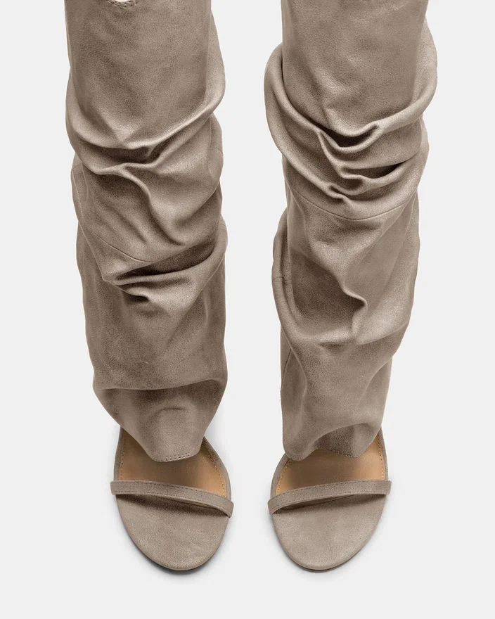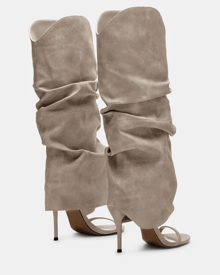 Ravine Cuffed Knee-High Boot är expertiskt tillverkad och designad och har en öppen tå och stilettklack för en stilfull touch. Den rundade tån ger komfort medan den eleganta designen tillför en touch av sofistikation. Lyft din look med denna måste-ha-stövla.