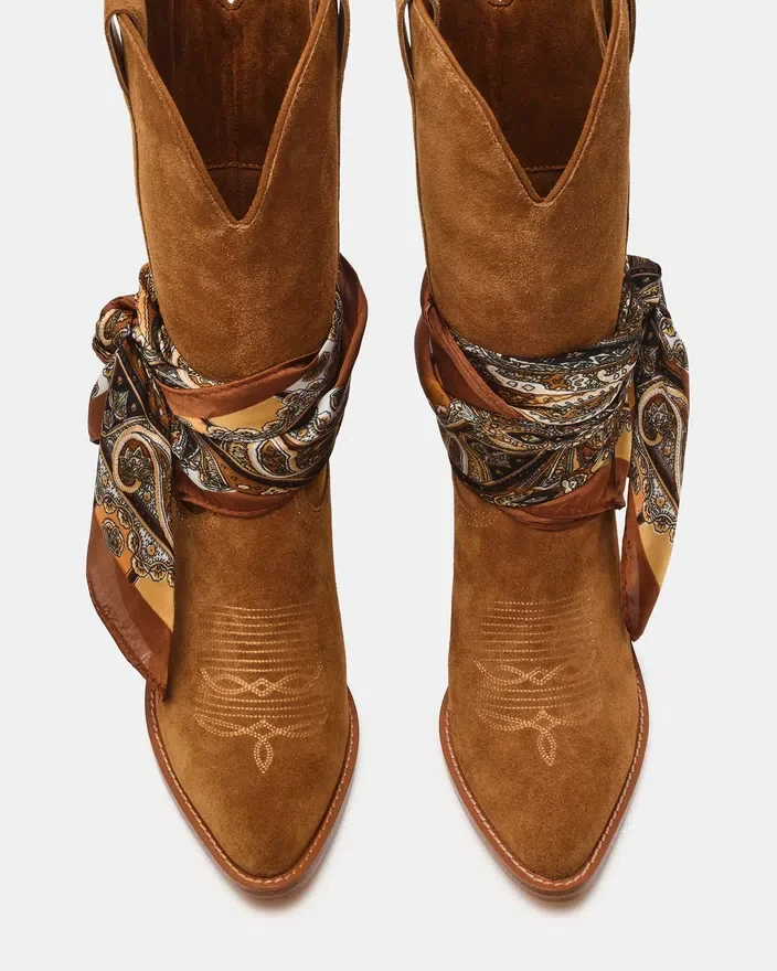 Sally Scarf Chestnut Suede är en Western-stövla med spetsig tå, utformad för komfort och mångsidighet hela dagen. Den robusta blockklacken ger stabilt stöd oavsett om du tar dig fram på stadens gator eller gör ett djärvt modeuttryck. Denna stövla är tillverkad i premiummaterial och erbjuder klassisk Western-stil med raffinerad konstruktion. Perfekt för att lyfta vardagsstilar eller ge en mer polerad look med en kant.5 tum skafthöjd