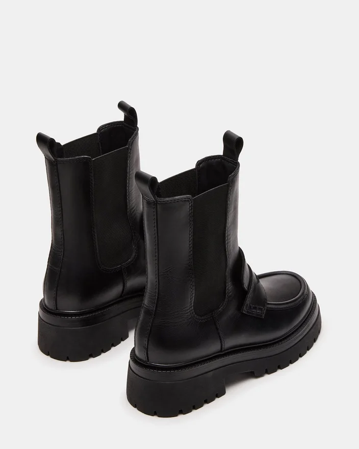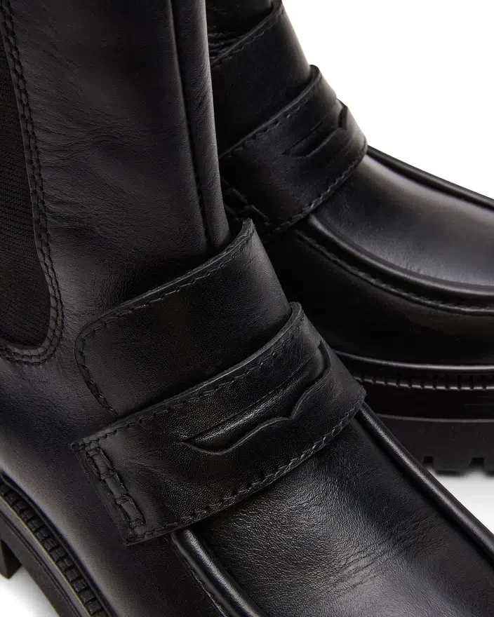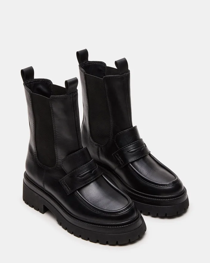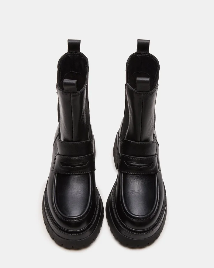Dessa Conway-stövletter i svart läder med plattform och grovmönstrad sula kombinerar robust hållbarhet med modern stil. De är tillverkade av premiummaterial och har en tjock grovmönstrad sula som ger utmärkt grepp och lång livslängd. Plattformdesignen ger extra höjd samtidigt som komforten bibehålls, vilket gör dem perfekta för både urbana äventyr och praktisk vardagsanvändning.