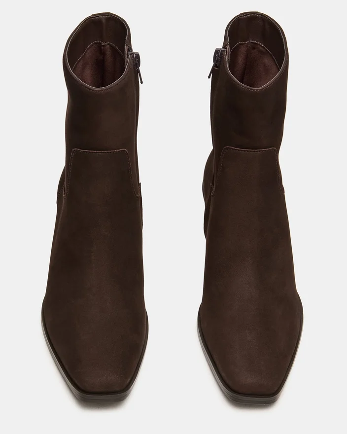 Daney Brown Suede Square-Toe Ankle Stövlel kombinerar modern design med sofistikerad komfort. Tillverkad av kvalitetsmaterial, erbjuder dess strukturerade fyrkantiga tå en modern touch samtidigt som den ger gott om utrymme för att bäras hela dagen. Den eleganta silhuetten och den robusta designen gör denna ankelstövlel till ett mångsidigt val som smidigt lyfter både i vardagsstil och i mer eleganta utrymmen med expertstil och raffinerad funktionalitet.