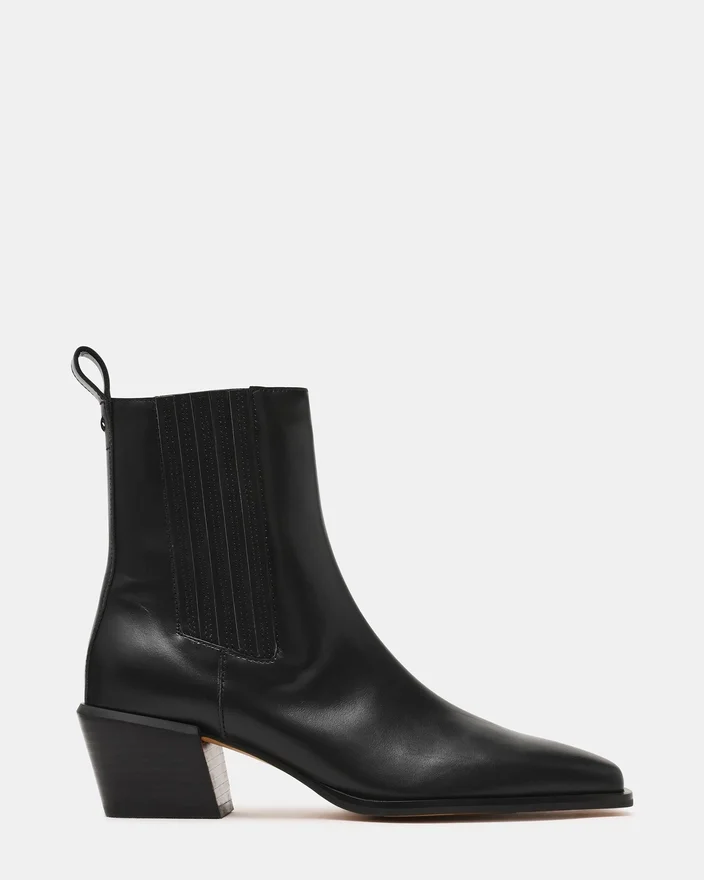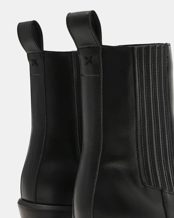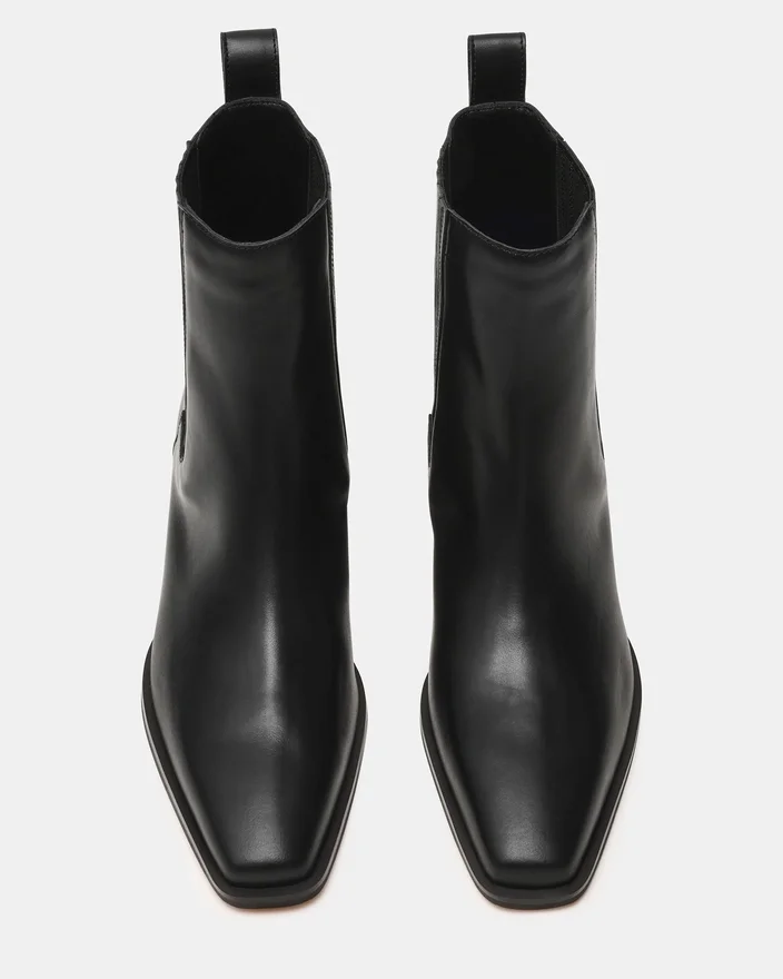 Darsen svart läderstövlel är en symbol för tidlös elegans med sin konstruktion och silhuett. Den fyrkantiga tån ger en modern touch medan blockklacken ger stabilitet och komfort hela dagen. Denna mångsidiga stövl passar lika bra på kontoret som på kvällen och kompletterar alla outfits med diskret elegans.