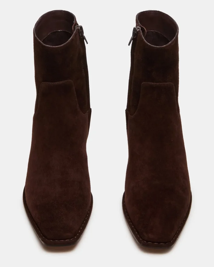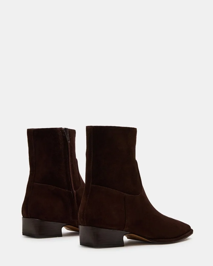 Dessa Define-ankelstövlar i brunt mocka har en modern design med fyrkantig tå som kombinerar modern stil med klassisk elegans. De är tillverkade av högkvalitativa material och erbjuder en raffinerad struktur och mångsidig charm. Den ankelhöga silhuetten ger bekvämt stöd samtidigt som den förhöjer din outfits sofistikerade utseende. Dessa stövletter är perfekta för både vardagsstil och festliga tillfällen och kombinerar trendiga detaljer med pålitlig komfort.