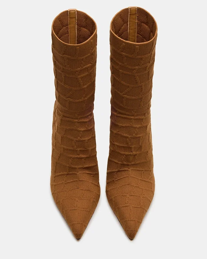 Lyft din stil med Midnite Tan Crocodile stilettklackade ankelstövlar. Med en elegant spetsig tå och en raffinerad silhuett erbjuder denna design en sofistikerad touch som är perfekt för både dag- och kvällsbruk. Den smala stilettklacken förbättrar hållningen och tillför en touch av elegans, vilket gör den till ett måste för en polerad, självsäker look.