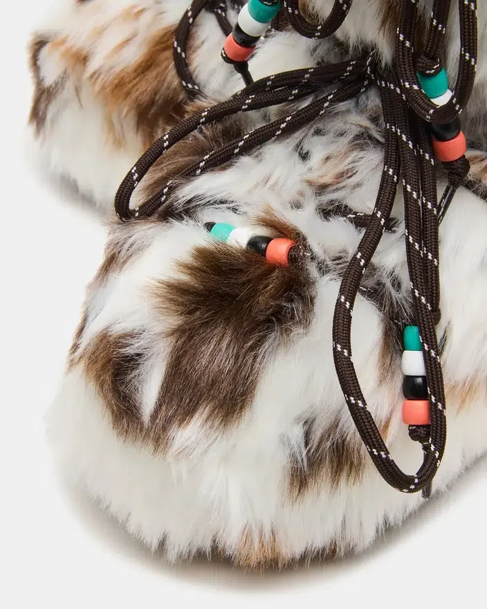 Förbättra din skokollektion med Miro-stövletten i fuskpäls, med fuskpälsfoder för värme och komfort. Den kraftiga silhuetten ger en djärv, modern touch, medan de flerfärgade pärldekorationerna tillför en unik, konstnärlig känsla. Denna snörstövlett är designad för både stil och hållbarhet och kombinerar sömlöst trendiga detaljer med praktisk användbarhet.