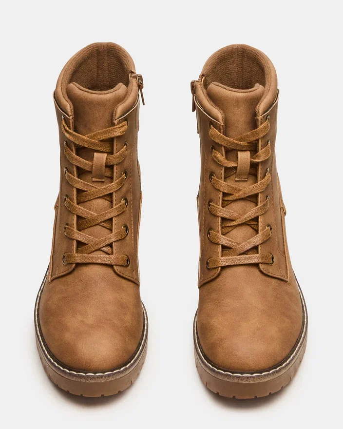 Sätt din fot i en avslappnad stil med Tuff Taupe, en snörbar ankelstövla designad för modern självförtroende. Med en stadig blockklack som ger komfort och stabilitet hela dagen, övergår denna mångsidiga stövla smidigt från vardagsstil till eleganta vardagslooker. Den klassiska snörningen garanterar en säker, anpassningsbar passform, medan den eleganta silhuetten smickrar alla kläder.