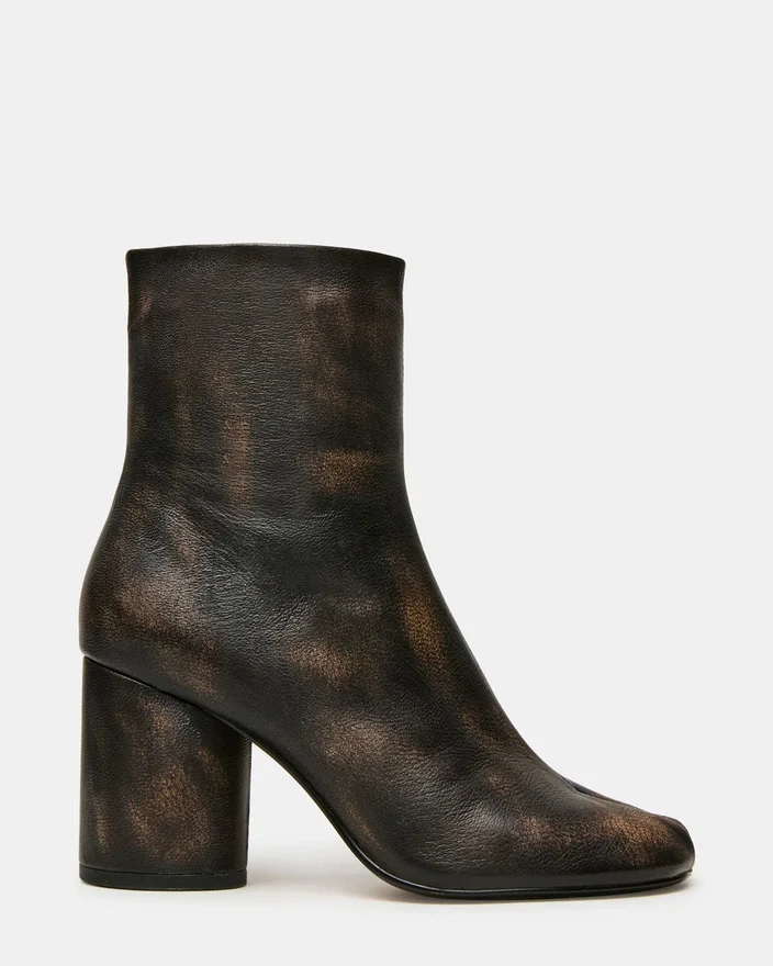 Caro Brown Distressed har den karakteristiska Tabi-silhuetten med delad tå, vilket ger en modern estetik med funktionell komfort. En stadig blockklack ger stabilt stöd hela dagen samtidigt som den behåller en elegant profil. Denna stövl kombinerar sömlöst elegant stil med vardaglig mångsidighet.