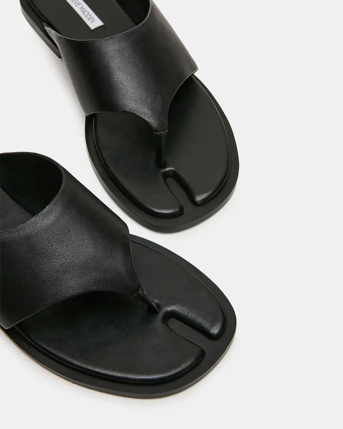 Illia Black Leather är en ny tolkning av de klassiska Tabi-skorna med en modern twist. Med en tjock, arkitektonisk rem som ger både stöd och stil, förmedlar denna tåsandal minimalistisk design med maximal effekt. Den distinkta silhuetten erbjuder en modern kant samtidigt som den behåller sin vardagliga bärbarhet, vilket gör den till ett idealiskt val för dem som uppskattar djärva, iögonfallande skor.