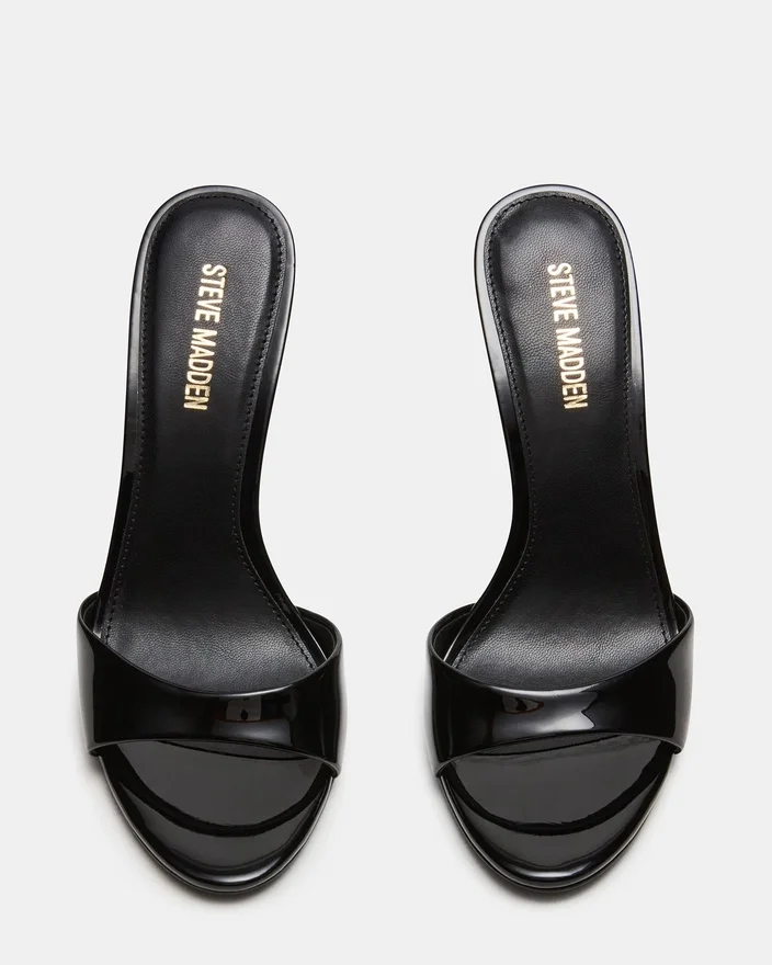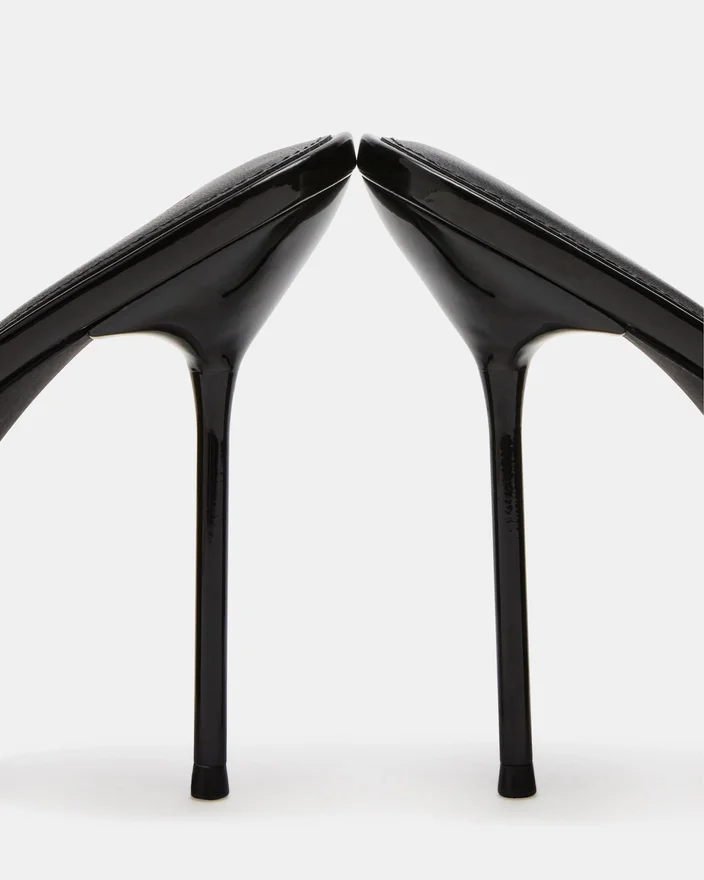 Davina Black Patent Mule kombinerar tidlös elegans med modern mångsidighet. Denna öppen tå-stilett har en elegant rund tå-silhuett som lyfter vilken outfit som helst. Den strömlinjeformade klackdesignen ger en sofistikerad höjd samtidigt som den är bekväm att ha på sig hela dagen. Perfekt för övergången från kontoret till kvällen, denna oumbärliga mule levererar en polerad stil med avslappnad elegans.