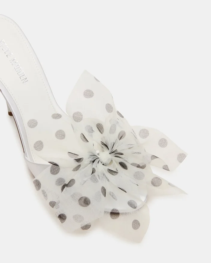Davina Tulle White/Black Polka Dot-mules kombinerar tidlös elegans med modern mångsidighet. Denna stilett med öppen tå har en elegant rund tåsilhuett som lyfter vilken outfit som helst. Den strömlinjeformade klackdesignen ger en sofistikerad höjd samtidigt som den är bekväm att ha på sig hela dagen. Perfekt för övergången från kontoret till kvällen, denna oumbärliga mule ger en polerad stil med naturlig elegans.