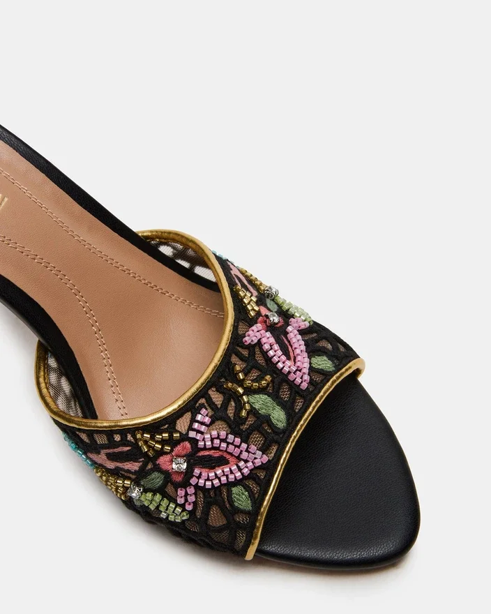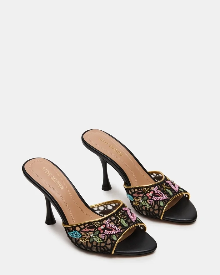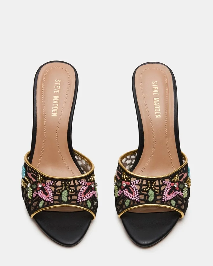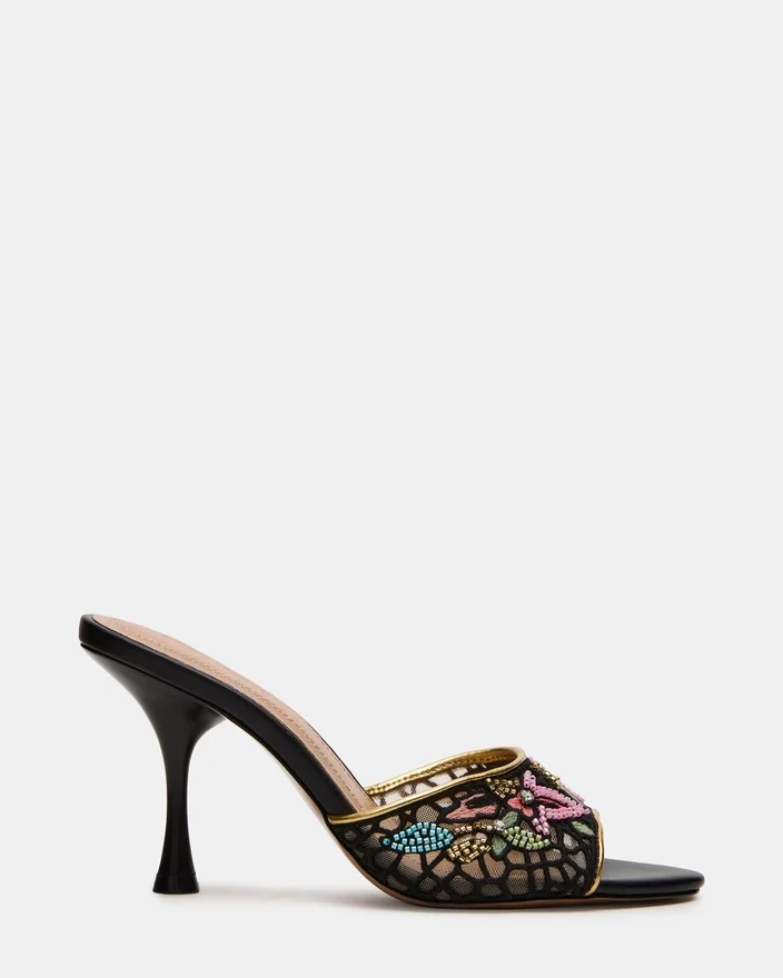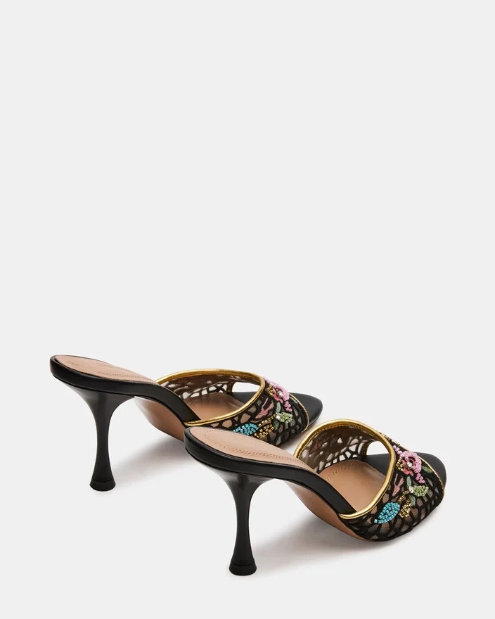 Santi Mesh Black Multi kombinerar modern sofistikation med tidlös elegans i en mule-klack med spetsig tå. Den eleganta silhuetten förlänger benet, medan det unika övermaterialet ger en modern, diskret look som är perfekt för mångsidig styling. Denna klack är skapad för både komfort och självförtroende och övergår smidigt från dag till kväll, vilket gör den till ett perfekt val för en raffinerad garderob.