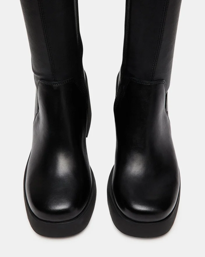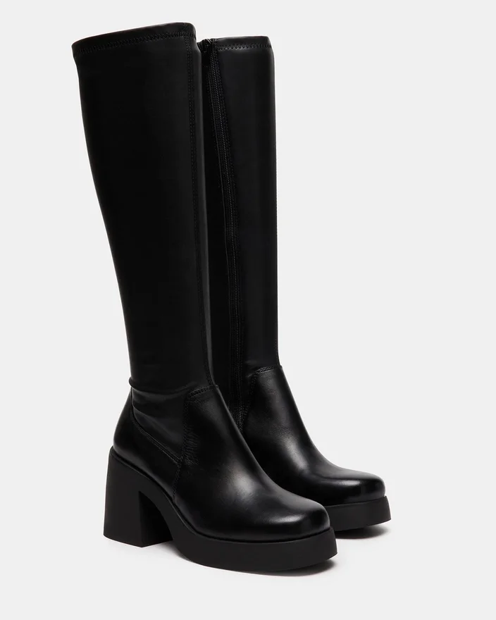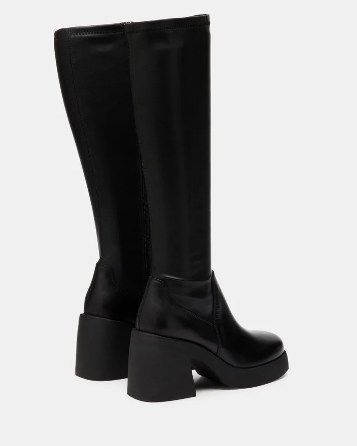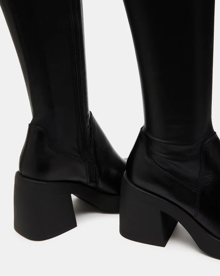Berkleigh-knästövlarna med fyrkantig tå ger dig en elegant och markerad silhuett med en konstruktion i stretchtyg och plattformssula med blockklack.