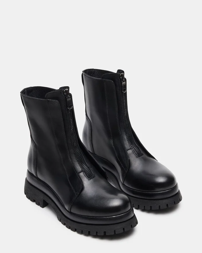 Milton-stövletten i svart läder har en elegant, motorcykelinspirerad design med slitstark läderkonstruktion. Denna stövletta kombinerar robust estetik med raffinerat hantverk och erbjuder både stil och varaktig komfort. Den robusta sulan garanterar pålitligt grepp, vilket gör den till ett perfekt val för dig som söker ett tufft men ändå praktiskt skoval.