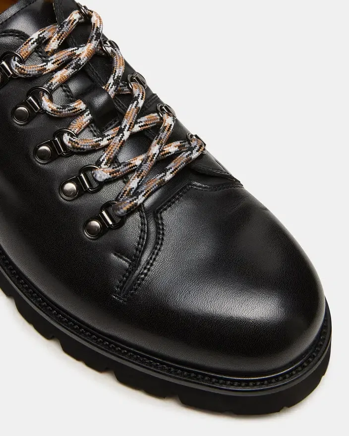 Turbo Black Leather Lace-Up Dress Loafer kombinerar raffinerat hantverk med modern mångsidighet. Med en elegant silhuett och förstklassig konstruktion övergår denna loafer smidigt från styrelserummet till helgklädsel. Snörningsdesignen erbjuder en anpassningsbar passform, medan de högkvalitativa materialen utvecklar karaktär med tiden. Ett sofistikerat val för dem som kräver både stil och substans i sin skokollektion.<!–