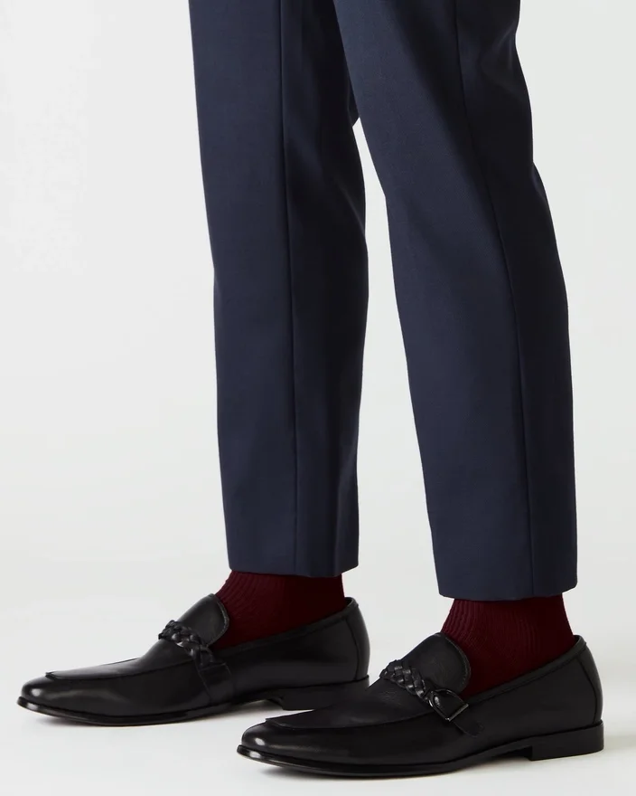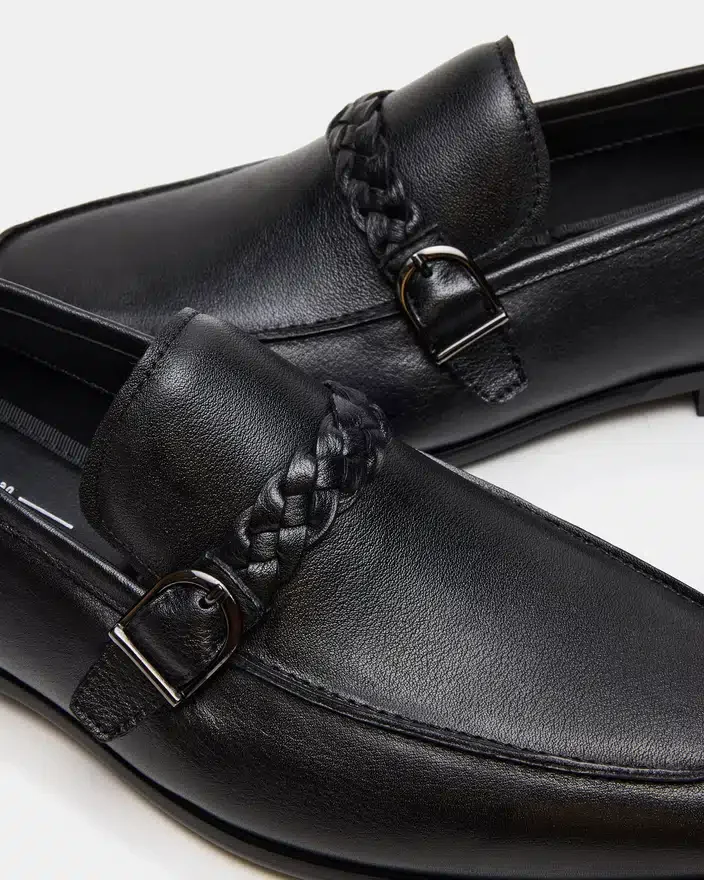 Chaplin Black Leather kombinerar tidlös loafer-stil med en distinkt vävd remdetalj som lyfter den klassiska silhuetten. Denna slip-on-modell ger en avslappnad elegans och är skapad för både vardagsbruk och festliga tillfällen. Ett raffinerat val för dig som uppskattar diskret elegans med genomtänkta designelement.