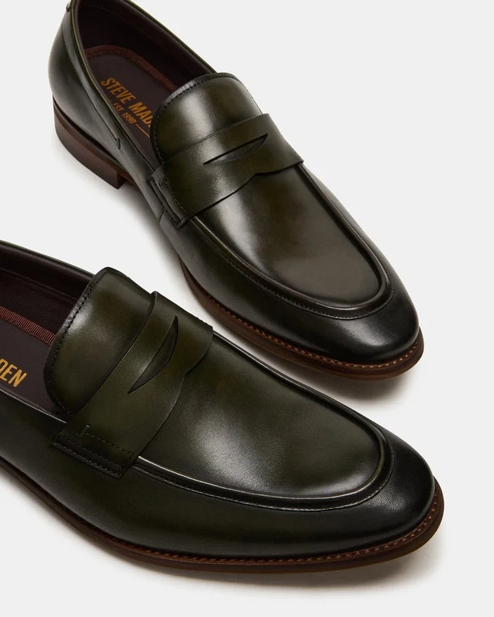 Den mörkgröna slip-on-Loafern Lightning kombinerar diskret elegans med praktisk design och har en rund tå som smickrar foten samtidigt som den bibehåller ett elegant utseende. Denna mångsidiga modell passar lika bra i professionella sammanhang som vid vardagsstils tillfällen, vilket gör den till ett perfekt tillskott i alla garderober.