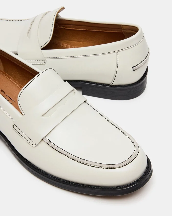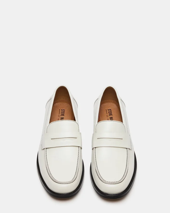 Vi presenterar den avslappnade stilen hos Natan White Leather Loafer. Med en elegant design och enkel slip-on-konstruktion erbjuder dessa skor komfort och sofistikation.