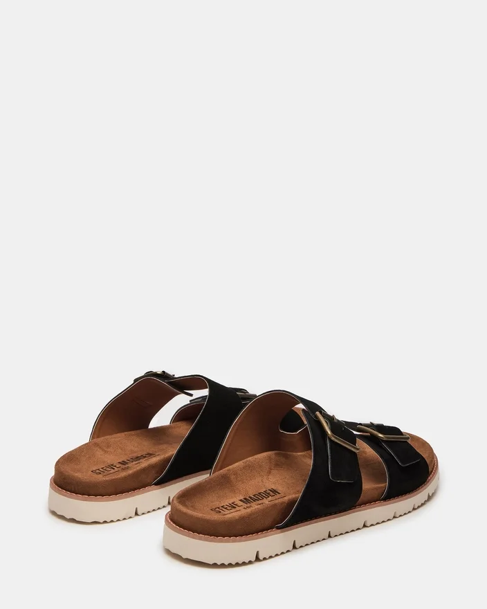 Corban-sandaler är tillverkade av högkvalitativt mocka och erbjuder både komfort och stil. Slip-on-konstruktionen och dubbla spännen säkerställer en säker passform, vilket gör dem perfekta för vardagsbruk. Lyft din skogarderob med dessa mångsidiga och snygga sandaler.