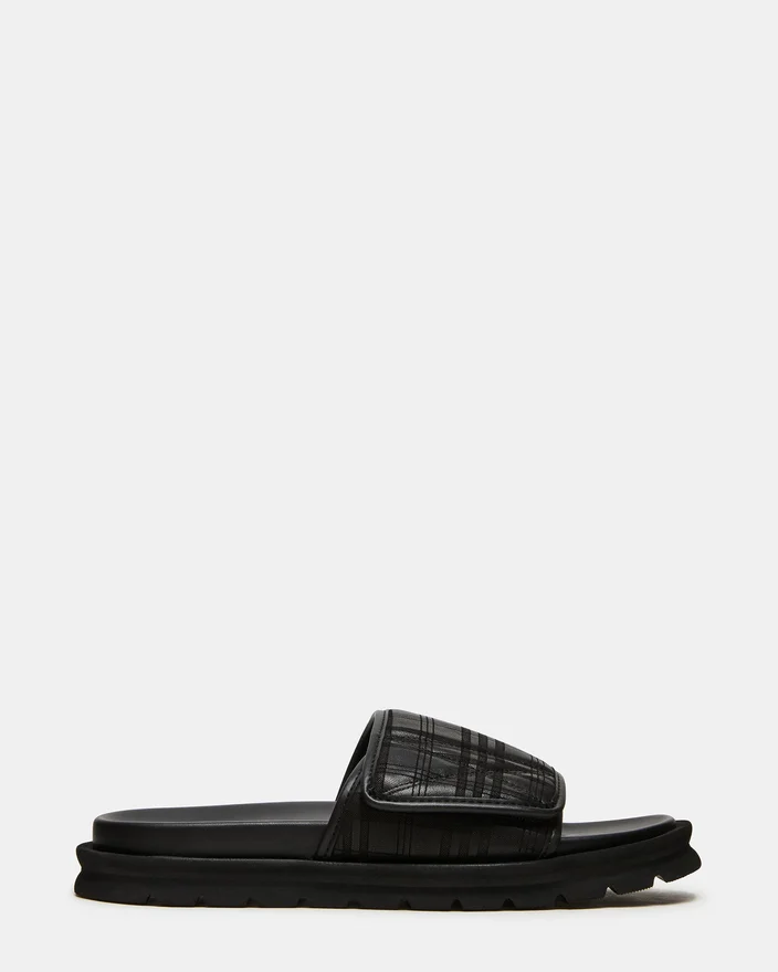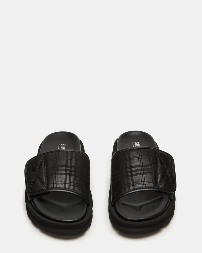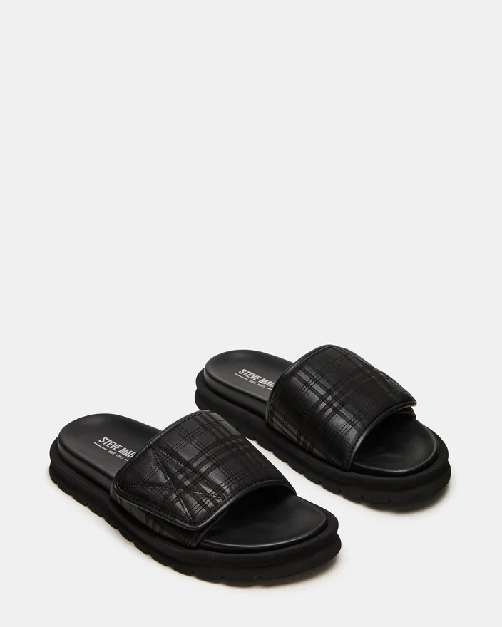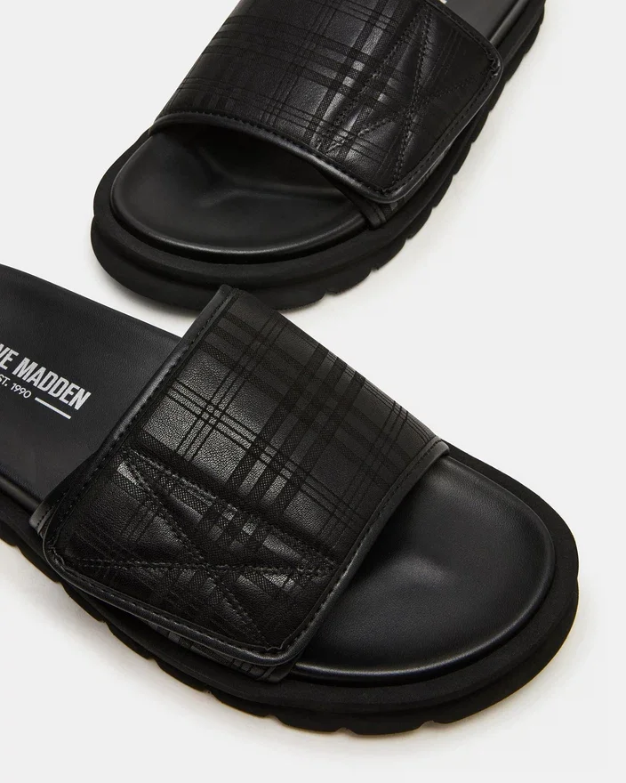 Reese Black Slide Sandal erbjuder bekväm komfort med en elegant silhuett som smidigt övergår från poolkanten till utflykter i vardagsstil. Med en konturerad fotbädd utformad för stöd hela dagen passar denna mångsidiga modell till allt från badkläder till sportkläder. Den hållbara konstruktionen garanterar lång livslängd, medan den minimalistiska designen gör den till ett måste i garderoben som fungerar under alla årstider.
