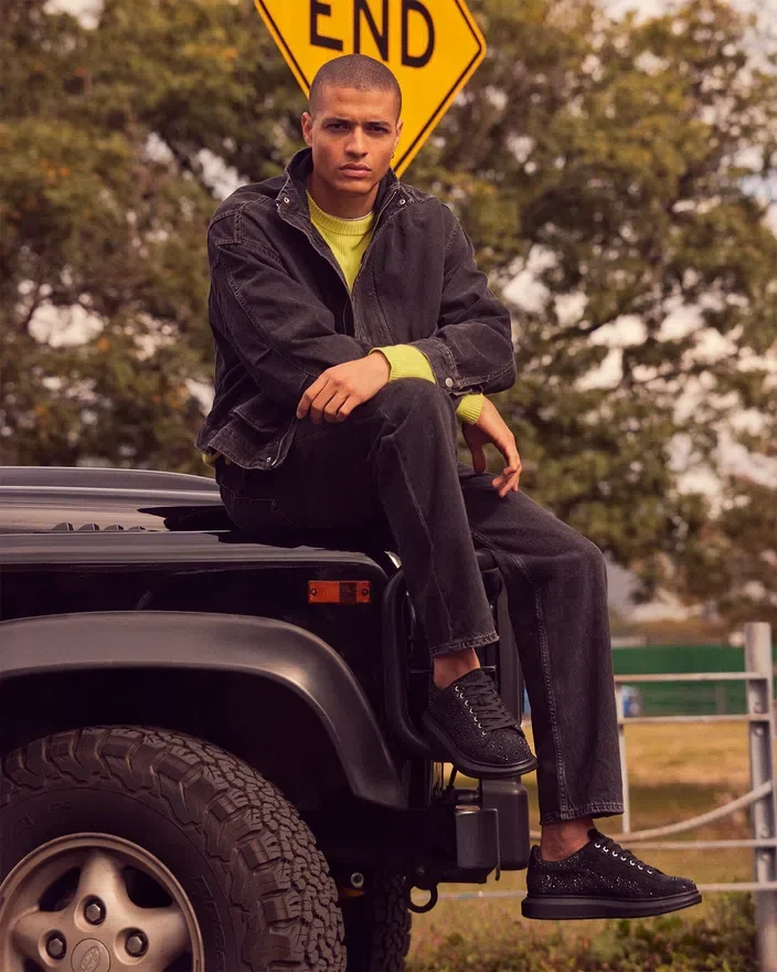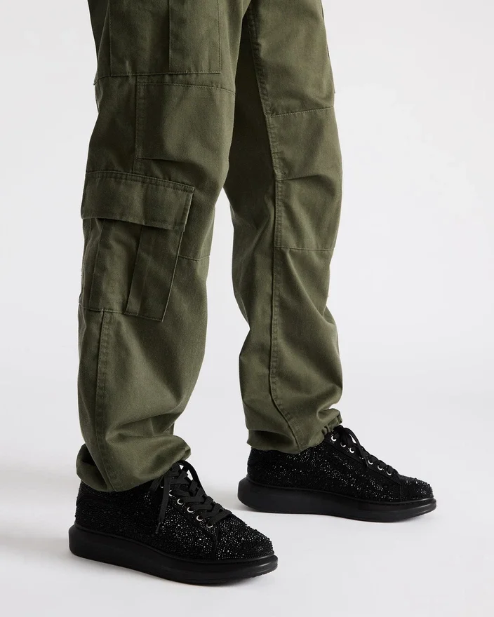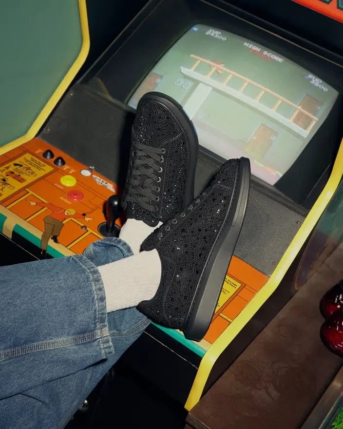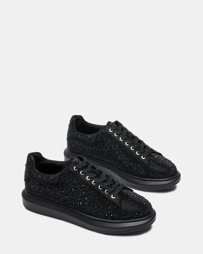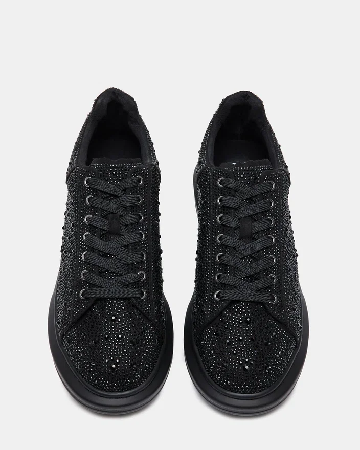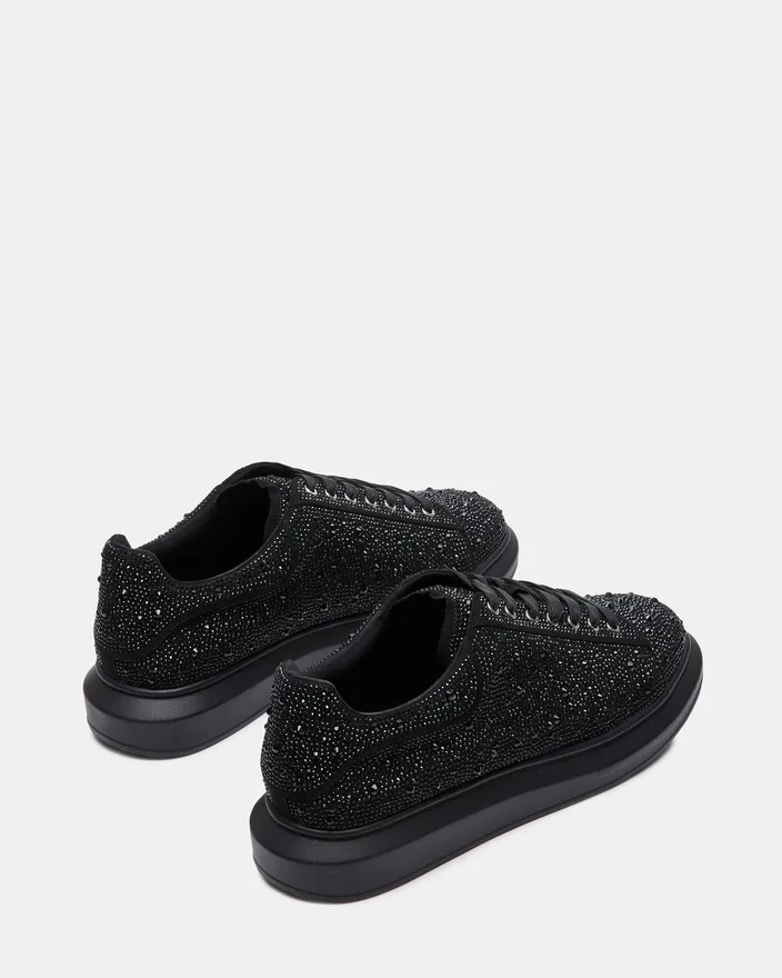 En tjock, platt plattformssula ger en stabil grund för Icebox-sneakern, som är helt täckt av strass i olika storlekar för maximal bling-effekt.
