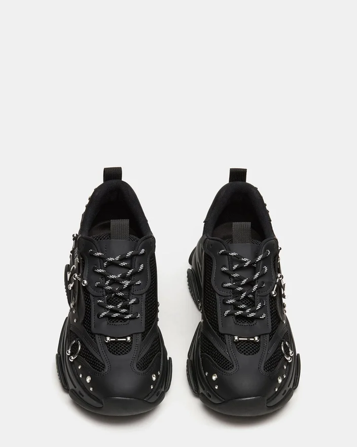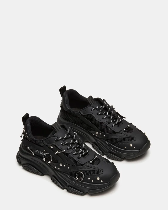 Pierced Black Sneaker kombinerar en elegant låg design med kantiga piercingdetaljer, vilket ger en modern twist på den klassiska snörningsstilen. Denna sko är tillverkad för både komfort och hållbarhet och lyfter vardagslooken med sina distinkta metalldetaljer, perfekt för dig som söker ett djärvt men ändå mångsidigt skoval.