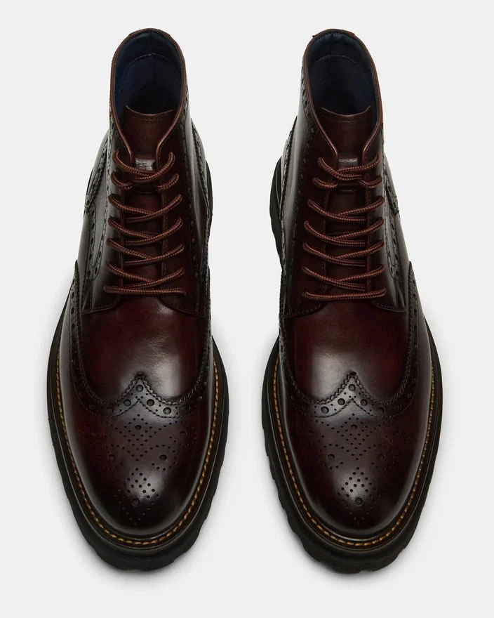 Koda mörkbruna snörstövlar kombinerar hållbarhet med raffinerad stil. Det säkra snörningssystemet garanterar en anpassningsbar passform, medan den robusta sulan ger pålitligt grepp och stöd. Designad för både komfort och hållbarhet är denna stövlare en must i varje garderob som söker en blandning av klassiskt hantverk och modern funktionalitet.