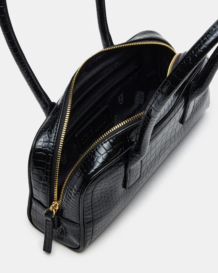 Anise Bag Black Crocodile är en elegant och strukturerad, avlång axelremsväska som fångar den minimalistiska trenden. Den har en innerficka på framsidan för extra organisation och överdrivna rörformade axelremmar för en chic touch. Lyft din accessoarstil med denna mångsidiga och stilfulla väska.