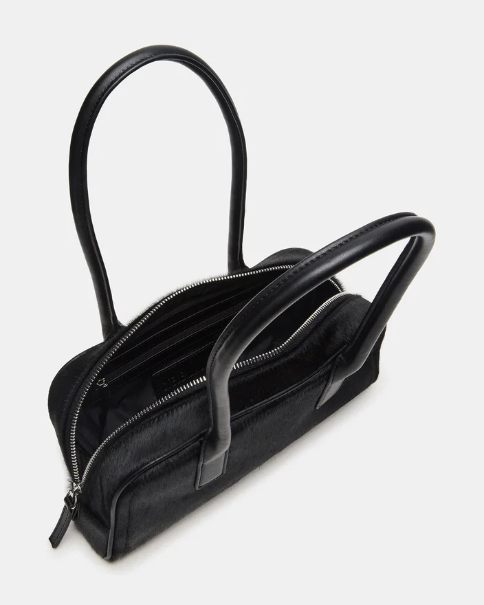 - Rymmer mer än det nödvändigaste, inklusive en telefon, en plånbok i full storlek, hörlurar, en sminkpåse och solglasögon