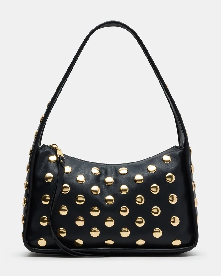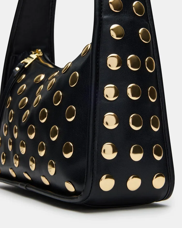 Cheyann-väskan i svart är en hobo-axelremsväska med nitar, designad för både stil och funktionalitet. Den har en säker dragkedja upptill som ser till att dina nödvändigheter förblir säkert inuti. Insidan har en praktisk ficka på bakväggen som ger organiserad förvaring för mindre föremål. Denna väska kombinerar enkelt trendiga designelement med praktiska detaljer, vilket gör den till ett mångsidigt val för vardagsbruk.