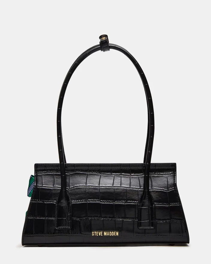 Milan-väskan i svart kombinerar klassisk design inspirerad av herrkläder med modern funktionalitet. Denna strukturerade, avlånga axelremsväska har en raffinerad preppy-estetik, accentuerad av en distinkt fluga-berlock i kombination med en hänglåsberlock för subtil sofistikation. Dess säkra magnetknäppning och innerfack med dragkedja på baksidan ger organiserad förvaring, vilket gör den både stilfull och praktisk för daglig användning.