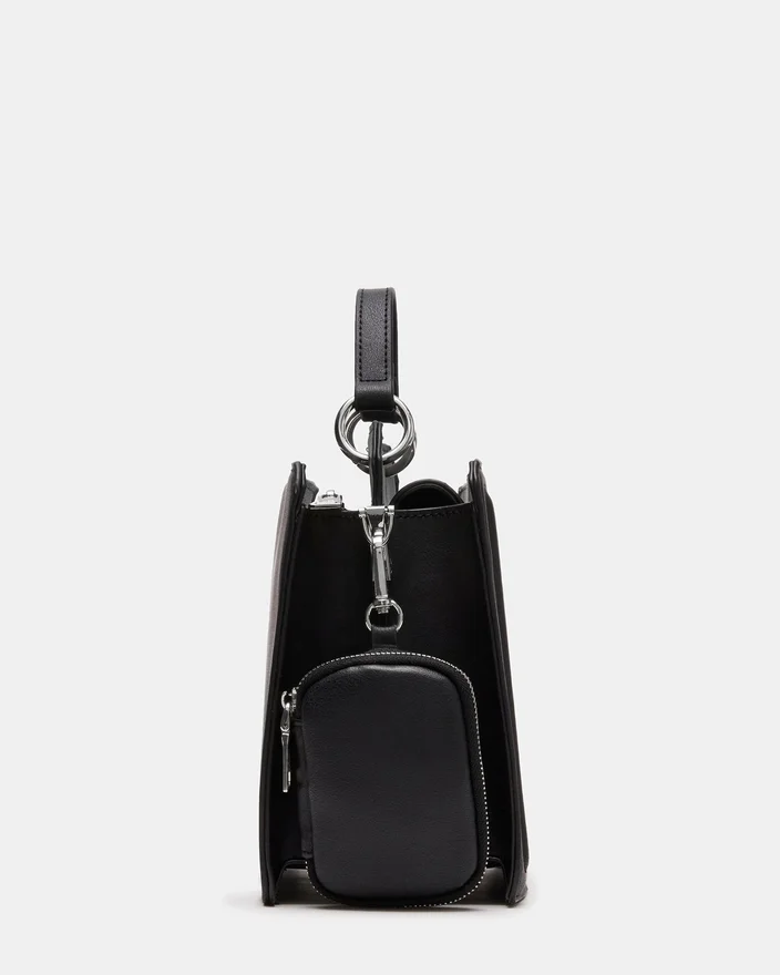 - Rymmer vardagliga nödvändigheter, inklusive telefon, liten plånbok, nycklar, små hörlurar och kompakt smink