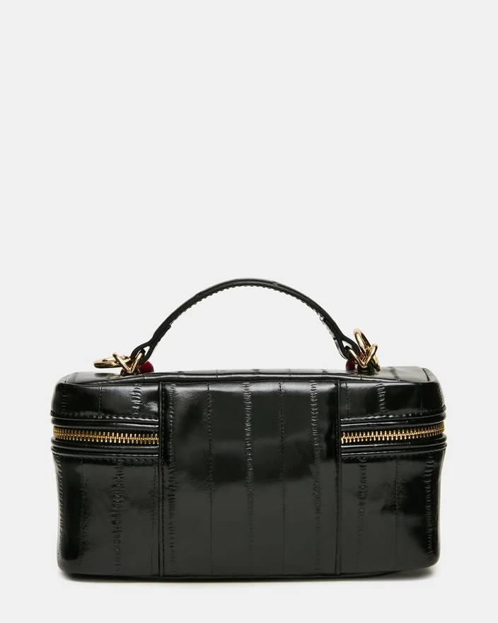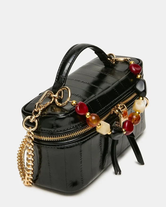Herra Bag Black Eel är en mångsidig handväska i sminkväska-stil, designad för vardaglig elegans. Med en iögonfallande pärlbesatt rem och ett handtag på ovansidan passar den perfekt både dag och kväll. Den avtagbara axelremmen erbjuder flexibla bäralternativ, medan den säkra dragkedjan håller dina viktigaste saker skyddade. Perfekt för dig som uppskattar både stil och funktionalitet i dina accessoarer.