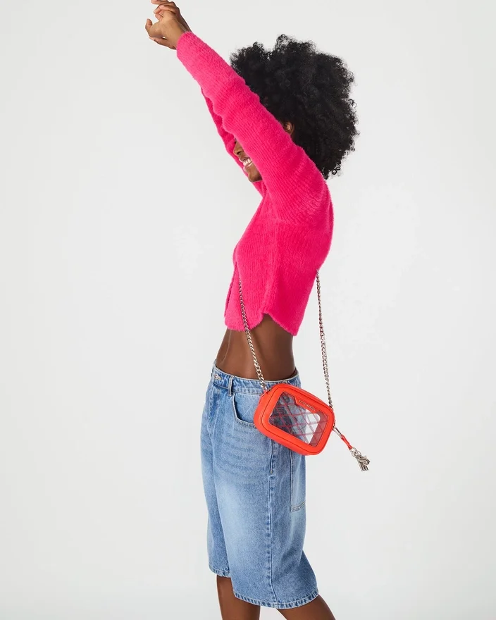 Jelly Bag är en trendig och funktionell genomskinlig kameraväska med axelrem som håller dina nödvändigheter säkra med sin dragkedja upptill. Dess strukturerade, skimrande design och matta beslag ger en sofistikerad touch, medan de quiltade sömmarna tillför ett stilfullt och trendigt inslag. Denna väska är det perfekta valet för en matchdag eller konsert, eftersom den uppfyller alla stadionkrav och levereras med en justerbar axelrem för ökad mångsidighet.