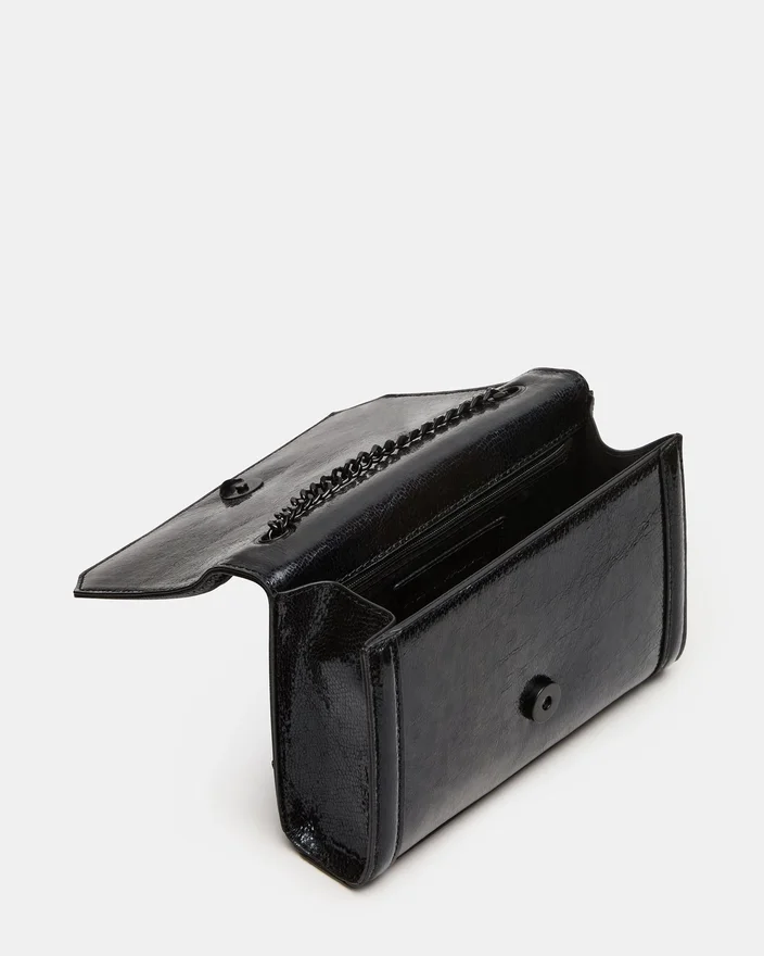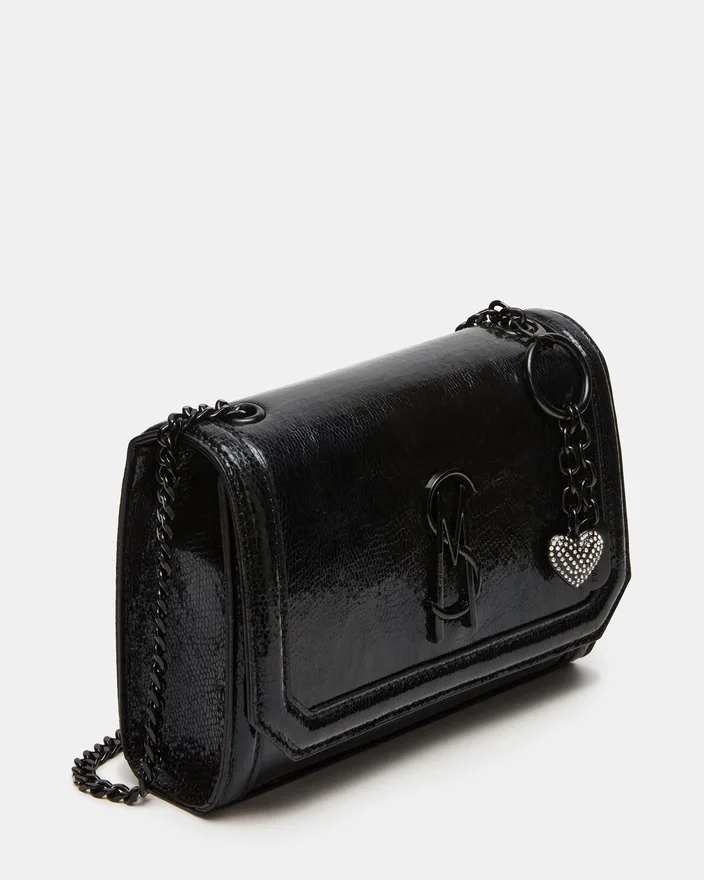 Larisas väska svart är en liten crossbody-väska med logotyp, skickligt tillverkad för dig som är på språng och utformad för att rymma dina nödvändigheter. Med en praktisk kedjerem och en frontflik med magnetknäppe har det aldrig varit enklare att hålla dina tillhörigheter säkra. Perfekt för bekvämlighet med händerna fria.